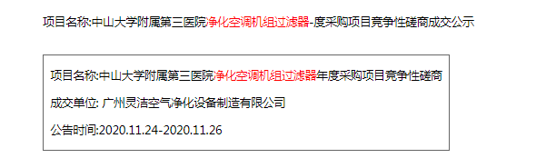 恭喜我司中標(biāo)中山大學(xué)附屬第三醫(yī)院凈化空調(diào)機組過濾器年度服務(wù)